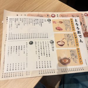 今回は単品で注文しましたが、2時間飲み放題付きで名物のおでん・餃子・牛タン・〆まで楽しめる5,000円コースもあるそうです。