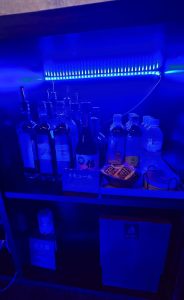 大きなモニターの他にテレビもついていて、部屋にセルフでできる飲み放題セットがついていたのですが、各種人気の缶酎ハイから有名なウイスキー・焼酎・ボトルの泡白赤などかなり充実していて感動しました!!自宅に欲しいっすね❤