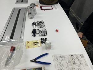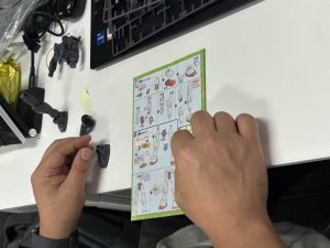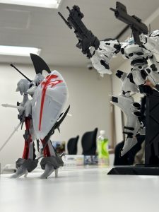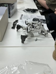 コトブキヤ製のホワイトグリントを組む後輩これもプラモ初心者が組むものじゃないなぁと見ながら感じました。