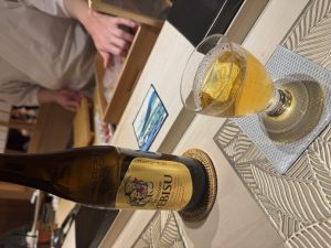 まずはビールと先付けの茶碗蒸し〜カツオのお刺身🐟